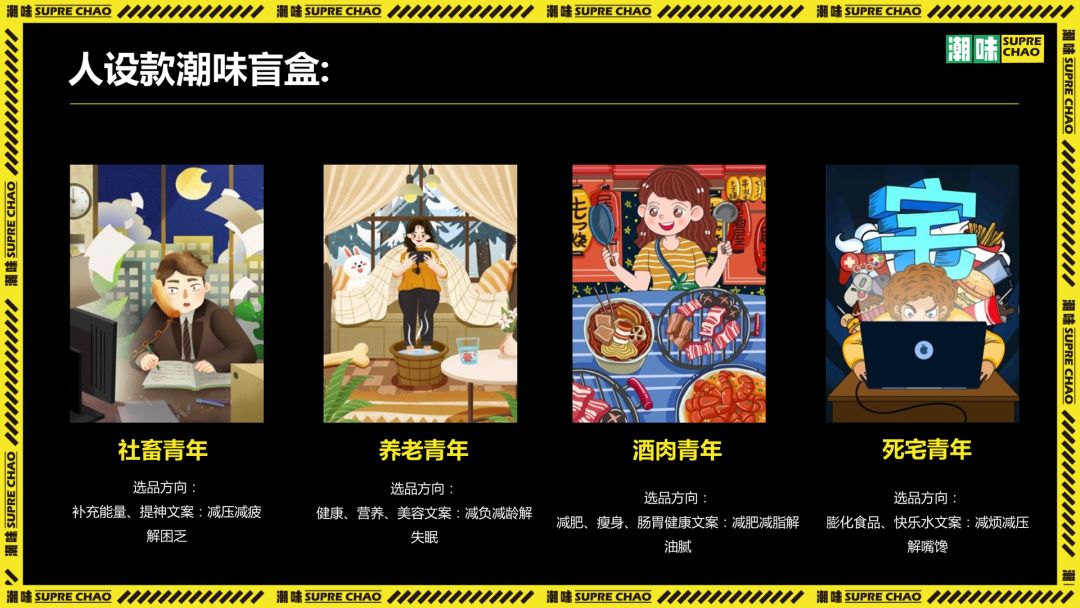 - 以主题化、场景式的潮味盲盒(the SupreChao Box)为载体,围绕4.69亿新消费者人设及消费需求;