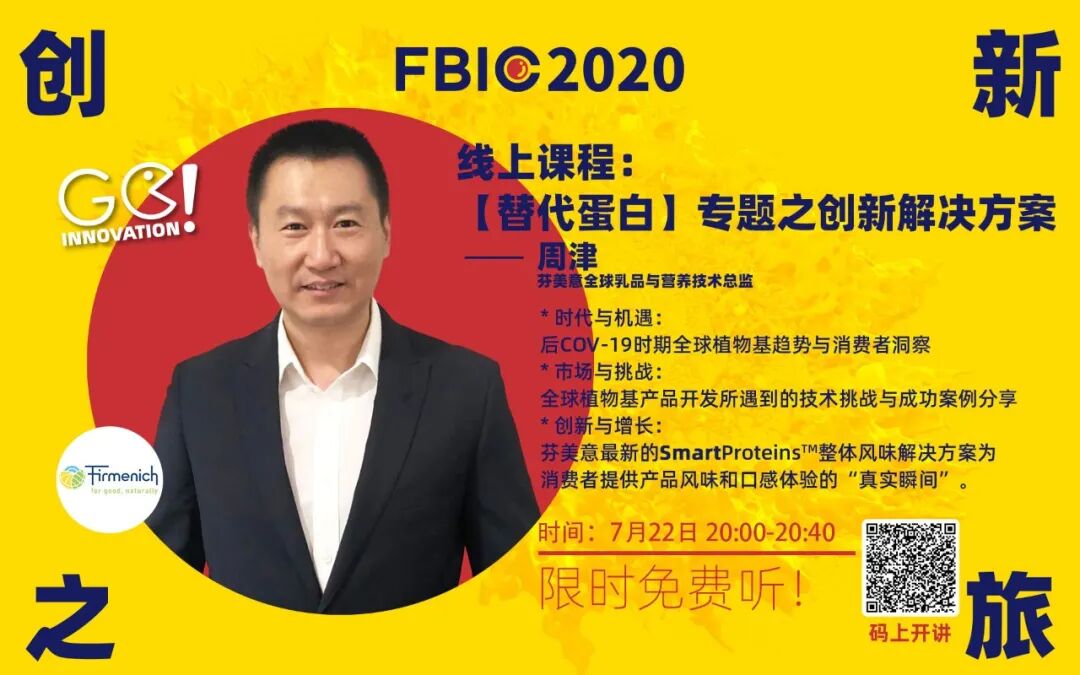 7月22日(周三)20:00-20:40芬美意全球乳品与营养技术总监周津先生为我们带来最新的「替代蛋白」创新解决方案,本期课程为直播形式,可免费观看,回放收费。让我们一起来寻找替代蛋白的下一个高潮吧!