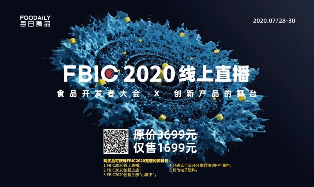 围绕产品创新,延续「创新产品的舞台」X「食品开发者大会」,FBIC2020已经圆满结束。今年,我们与行业一起见证了不可小觑的中国食品创新力。让食品创新触手可及,Foodaily真诚地期待与行业共同进步,也希望明年以更好的姿态与大家再见面。7月28日-7月30日,由Foodaily每日食品携手全球顶级产业合作伙伴举办的FBIC2020全球食品饮料创新大会以「新消费品牌浪潮」为主题在海宝华万豪酒店举行,并于7月30日圆满落幕。在这里,Foodaily与1291位行业决策人共同见证了严选的海内外创新产品、来自不同领域产业专家的创新思想,深度感受来自中国新品牌/新品类的创新力量。接下来,我们整理了FBIC2020的精彩回顾,并与大家分享。Foodaily每年从近26万上市新品中严选2.6万入库,并精选出2400sku全球最创新产品汇聚到FBIC2020「创新产品的舞台」。它们按照品类、品牌、消费&商业场景、热点机会等多维度进行展示,莅临现场的参会嘉宾从数据、产品实物、重点信息解读、品鉴体验来360度探索体验前沿创新,捕获新品灵感。在FBIC2020「创新产品的舞台」中心位,囊括iSEE食品创新力大奖百强、iSEE创新力推荐的近200款产品代表中国食品创新力与全球权威奖项的获奖产品共舞。今年,我们增加了2400sku全球创新产品的动态解析,邀请了来自杜邦营养与生物科技、奇华顿、帝斯曼、罗盖特、嘉利达、华熙生物、益普索、铂澜咖啡、中国保健协会、植堤桥、小象智合、中央美术学院等近20位行业/产业专家进入「创新之旅直播间」、结合创新产品实物进行解析,从Foodaily洞察的10大商业热点为切入点,涵盖定义及产品案例解析、商业及投资分析、经典品牌案例拆解、交钥匙工程四个板块,共同助力食品开发者更好地理解商业机会及解决方案。FBIC2020共聚集了来自中国、欧美、日本的90位演讲嘉宾,共进行了43场演讲、9场圆桌讨论,并且按照高层创新峰会(全体大会),CEO Club,饮料&功能性食品、餐饮&烘焙、包装&设计创新、乳品&零食、品牌&营销等环节来共同探讨食品行业未来5年内的创新机遇与路径。值得一提的是,在FBIC2020现场,Foodaily每日食品将联合FIEAC(Z-Choice北美)共同发起CEO Club私享会。集聚欧洲、美国、亚太、中国区资深行业创新首领于一堂,在全球先进的供应链、研发、商业&品牌资源和视野下,思享本土孵化创新,推动中国食品全价值链创造能力。同时,我们也邀请了唐硕体验咨询、巨量引擎(字节跳动)从消费升级下新品牌新挑战新机遇、新营销新布局的角度,思辨新消费浪潮下的新品牌孵化以及产品创新的挑战与机会。本着让好的产品被更多人看见,Foodaily每日食品发起iSEE食品创新力大奖,本届一共收到了130个品牌307个创新食品饮料产品的申请。综合Foodaily产品委员会、专业评审、消费者评审的综合加权,“iSEE食品创新力大奖”颁奖典礼于7月28日晚在FBIC2020现场隆重举行,综合创新奖(包含铂金奖、金奖、银奖、铜奖)、最佳单项奖、新锐创新力TOP10等奖项逐一揭晓。为助力「iSEE食品创新力大奖」及「iSEE创新力推荐」的创新产品更快抵达消费者,在FBIC2020「创新产品的舞台」现场,Foodaily洞察并打造了11大消费场景,深度融合人货场,通过社交&直播电商,完成产品的深度种草及直播转化。Foodaily一直相信Z世代年轻人的力量,并携手全球食品、设计、商科等高校,联合食品行业巨头企业、知名原辅料公司、优质技术服务公司、渠道平台和媒体等发起了“CAPINNO 全球食品饮料商业挑战赛”,孵化小而美的新生代品牌,并链接行业巨头企业。在FBIC2020的CEO Club私享会上,5支优秀团队及作品进行精彩路演,并获得CAPINNO菁英奖。我们邀约了涵盖食品、大众财经、商业、美食等领域50+行业媒体来到现场,除了现场演讲嘉宾的专访,Foodaily主导并进行了近20家品牌的媒体专访。截至发文,我们已完整剪辑整理好所有的演讲场次及圆桌讨论现场视频的录制,并上传至小鹅通,现场参会嘉宾可以通过兑换码无限回放。而对于未参加到现场的您,若希望得到完整的资料包(含FBIC2020线上直播+FBIC2020创新之旅+Foodaily创新手册“小黄书”+已确认可公开分享的演讲PPT资料+其他电子资料),您可以通过以下方式购买。